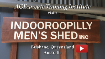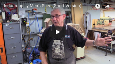 Tour of the Indooroopilly Men's Shed with host David SilcoxTheir tagline reads "Shoulder to Shoulder". Research points to the fact that men communicate with others side-to-side, while women are more inclined to communicate face to face.