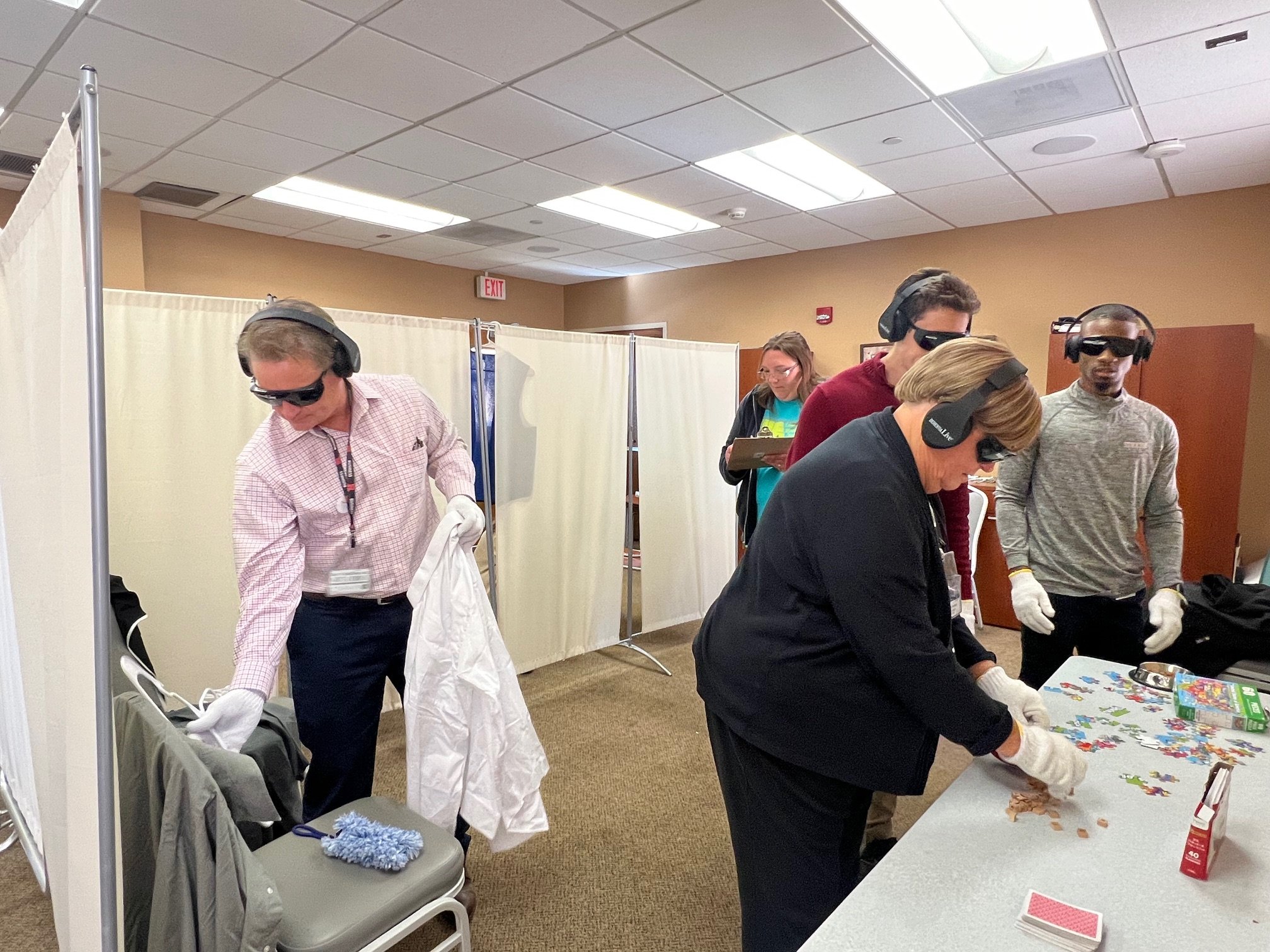 A house-wide Dementia Live kick-off was hosted by the five trained Coaches of Teresian House just after Thanksgiving 2022. Two Experience rooms were set up and staff from all departments were encouraged and enabled to go through the Dementia Live experience.